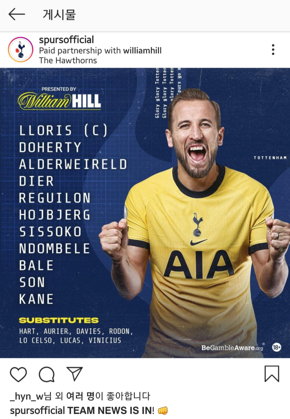 방금 뜬 따끈따끈한 사진!! 토트넘 인스타그램 공식 계정에서 올린 라인업 사진이다.