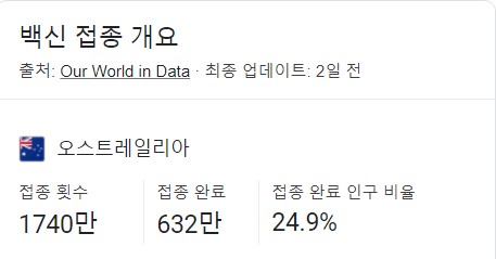현재 호주의 백신의 접종률은 약 25%이다. [2021년 8월 24일 기준]