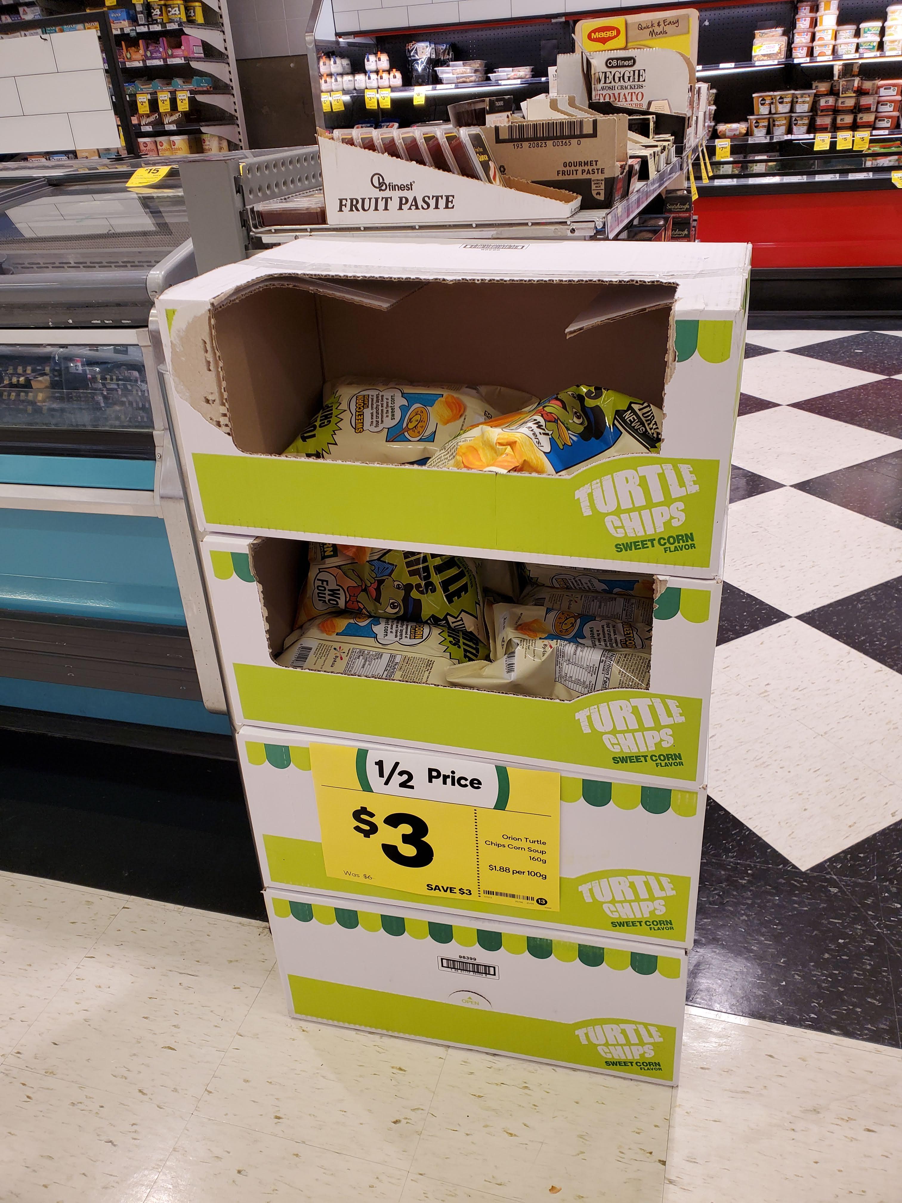 호주에서 가장 커다란 마트 중 하나인 울월스에서 한국의 꼬북칩을 그것도 반값에 판매 중이다. 원래의 호주 가격이 한국의 2배였던 점을 고려하면 한국 소비자 금액과 비교하더라도 전혀 더 비싸지 않은 금액으로 구입이 가능했다.