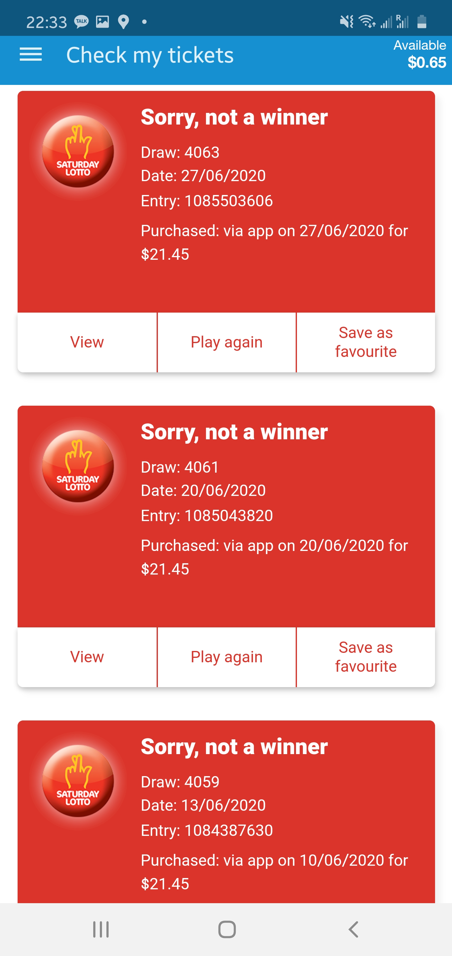 호주 복권이라기보다 호주 로또라고 해야 정확하겠지만, 매주 10~20불을 꾸준히 투자하고 있다.