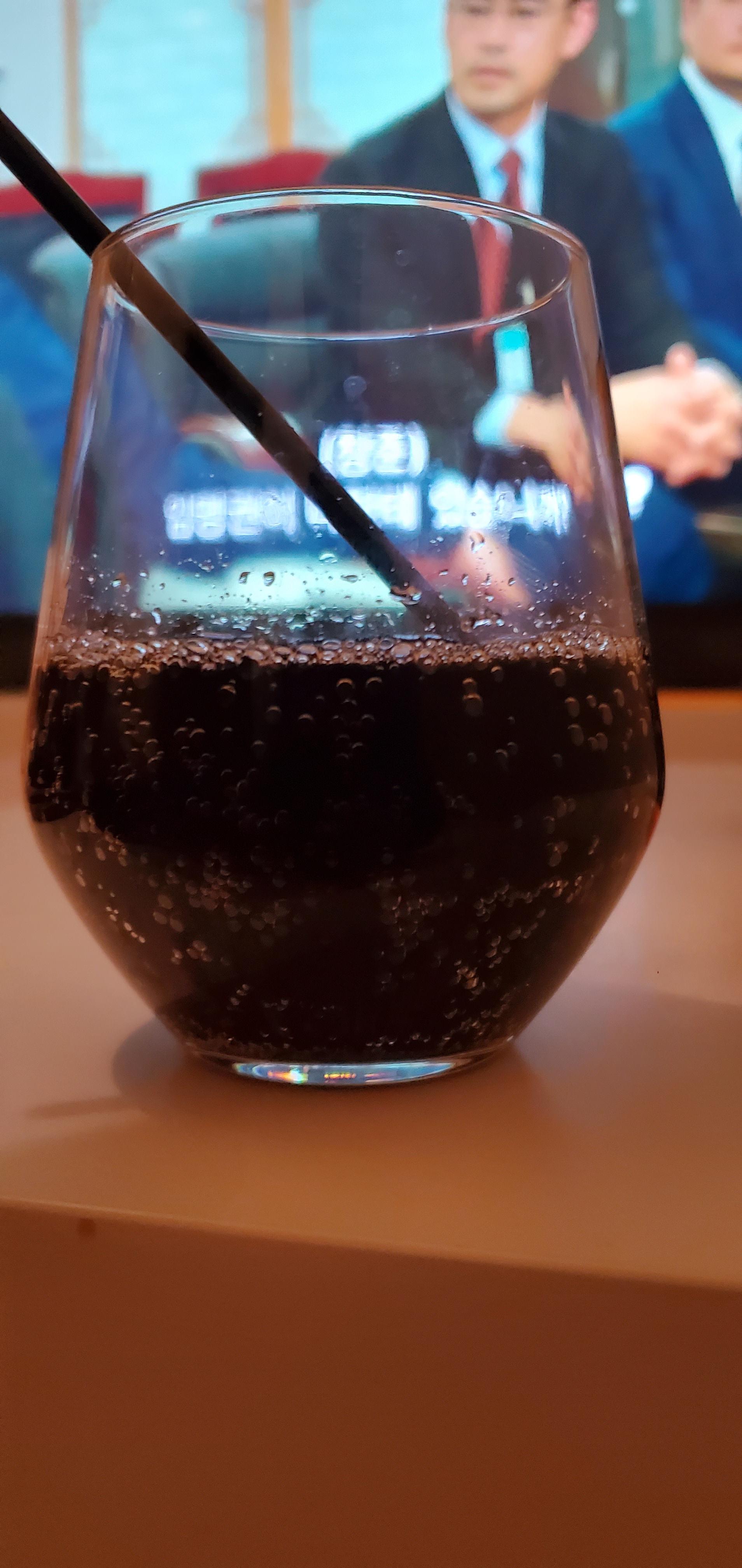 콜라는 얼리면 얼음 콜라 맨 아래로 모이는 콜라의 찐득한 원액? 같은 느낌의 망고맛이 섞여있는 그런 느낌이었다.
