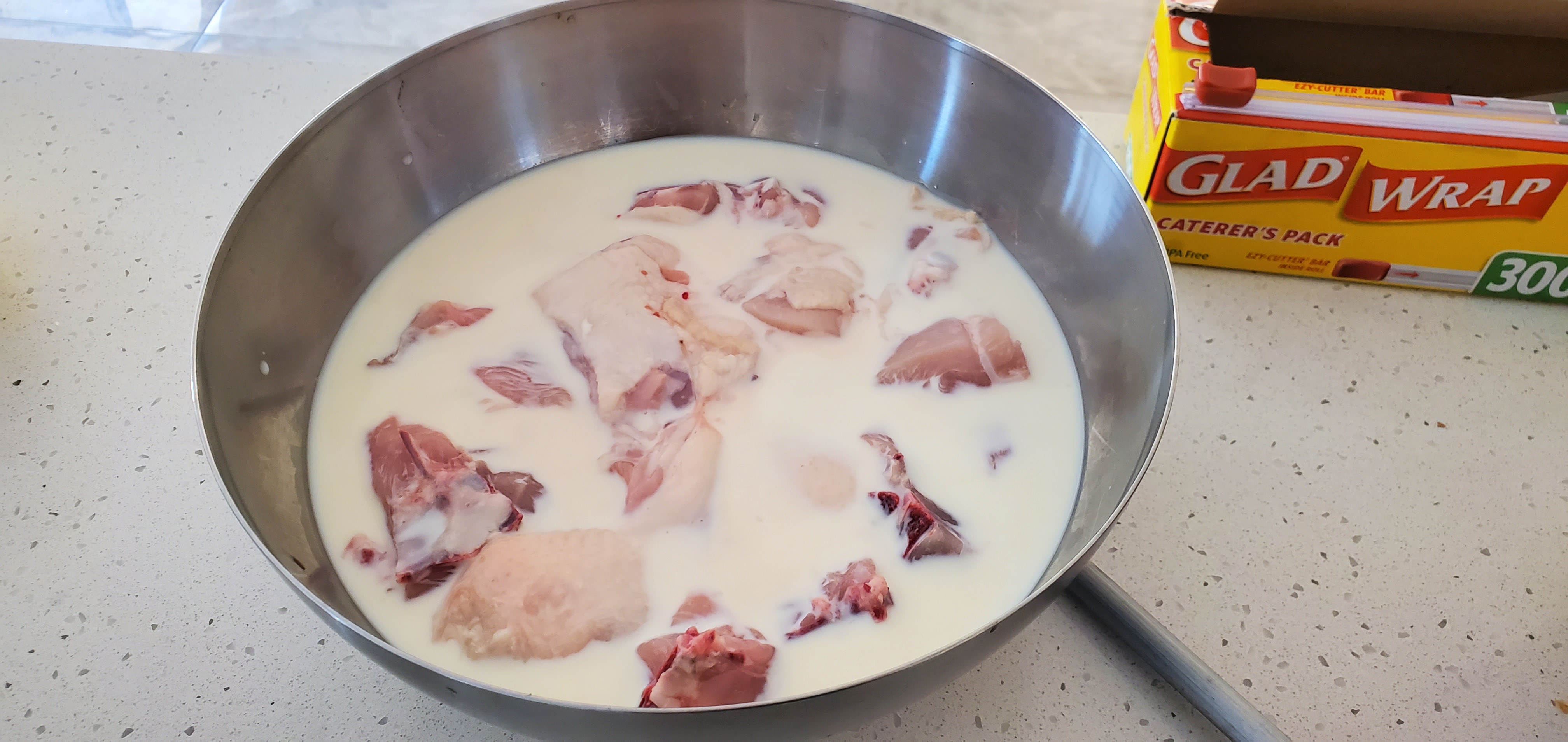 1. 일단 분해한 닭을 우유에 30분간 넣어서 비린내를 제거한다.