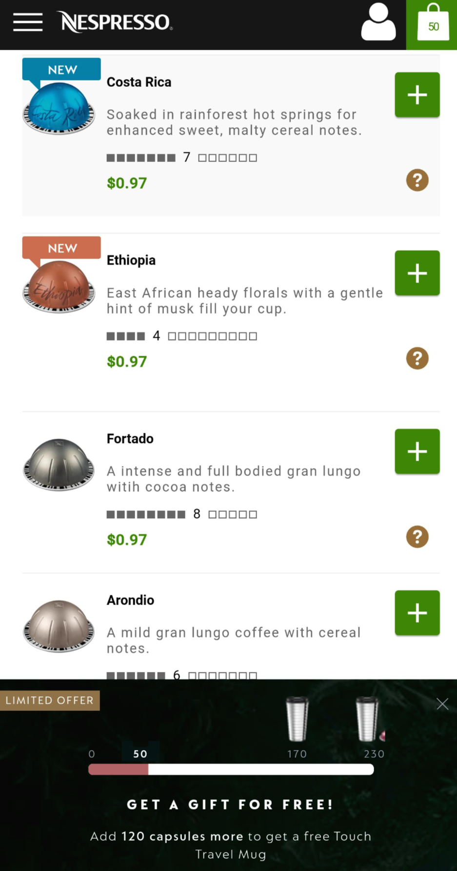 170개 이상의 캡슐을 구입하게 되면 무료로 텀블러를 증정하고,