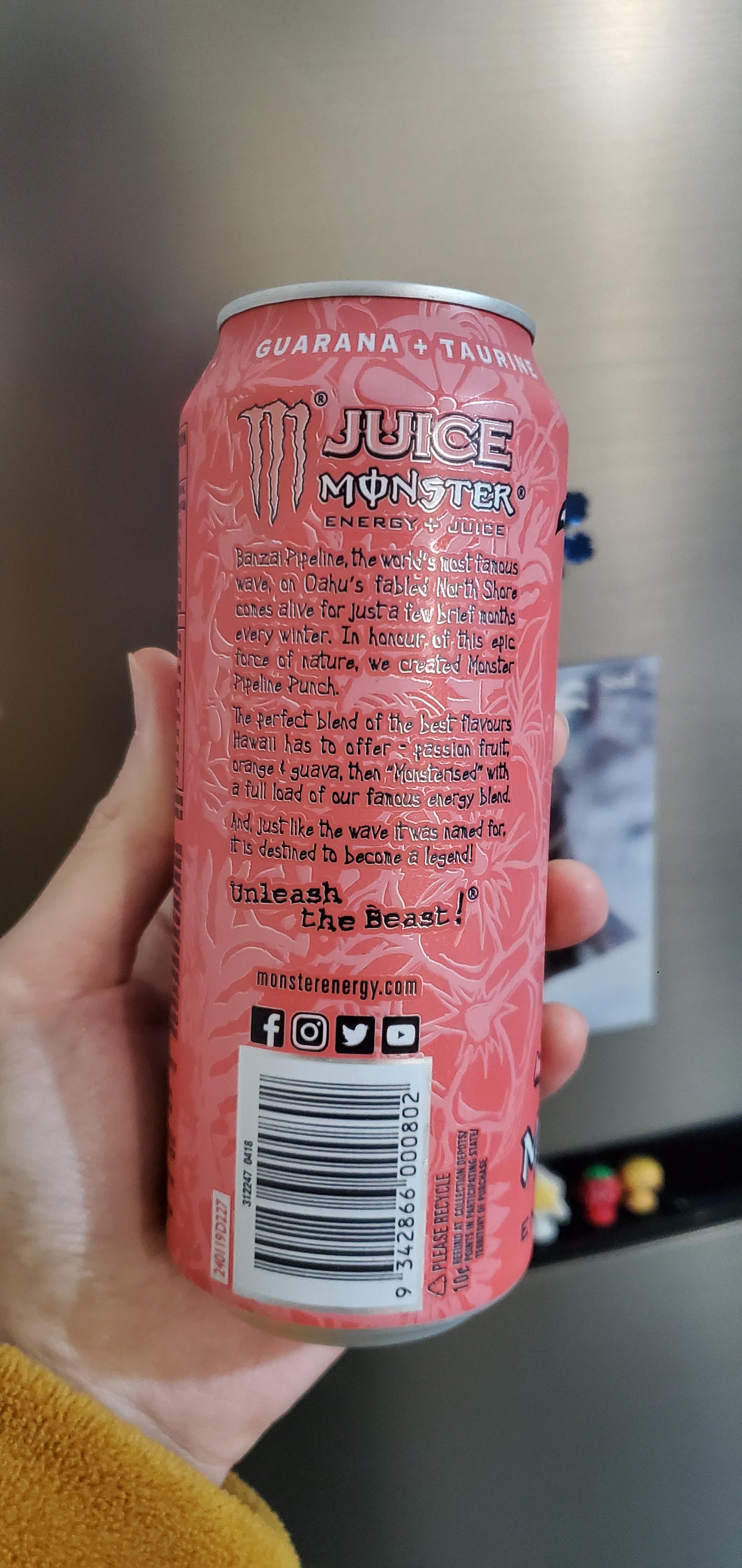일단 엄청나게 달다. 다른 몬스터나 핫식스, 레드불 등의 제품들보다 내가 느끼기엔 단맛이 훨씬 강하다.